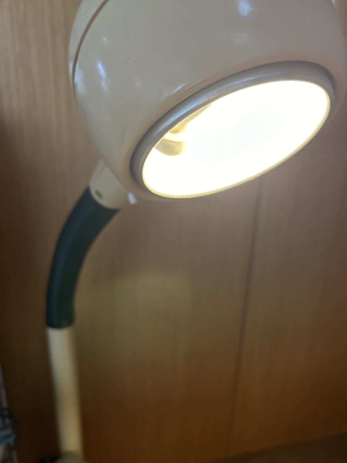 ニョキッと出ている白い長い棒の押しボタン式のスイッチが2回に1回しか点かないことが長らく続いたあと、ある時をさかいに10回に1回からだんだん増えていって80回に1回に増えつつもどうにか点きました(忍耐の勝利)。しかし、100回を超えたところで、さすがにこの押しボタン式スイッチの修理を決断したのでした。私の能力では100以上を数えられないというのもあります(😀)。